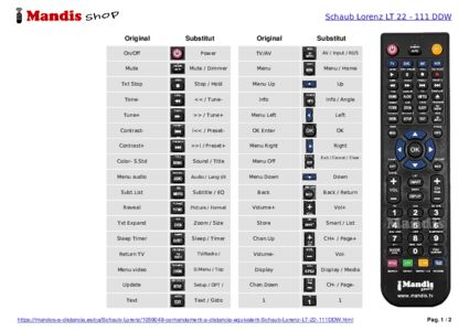 Aquest comandament a distància substitueix completament el teu LT22-111DDW en totes les seves funcions. No és un comandament universal, sinó una còpia exacta del teu original.