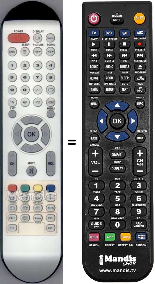 Comandament a distància que substitueix a l'original en totes les seves funcions.
