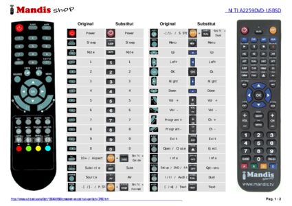 A continuació, us mostrarem la correspondència entre cada un dels botons del comandament original i el botó que realitza la mateixa funció en el comandament de substitució. En alguns casos, és possible que necessiti prémer la tecla SHIFT abans de prémer un altre botó per realitzar certes accions. Aquestes funcions addicionals sovint no s'utilitzen gaire i s'inclouen per facilitar la comprensió del comandament de substitució, o perquè el comandament original té més botons que el seu equivalent.