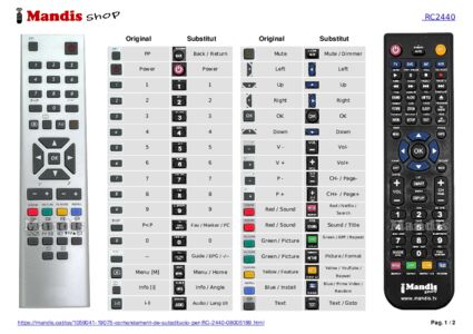 A continuació, us mostrarem la correspondència entre cada un dels botons del comandament original i el botó que realitza la mateixa funció en el comandament de substitució. En alguns casos, és possible que necessiti prémer la tecla SHIFT abans de prémer un altre botó per realitzar certes accions. Aquestes funcions addicionals sovint no s'utilitzen gaire i s'inclouen per facilitar la comprensió del comandament de substitució, o perquè el comandament original té més botons que el seu equivalent.