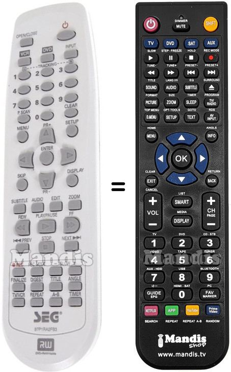 Aquest comandament a distància substitueix la majoria de les funcions del teu 97P1RA2FB3. No és un comandament universal, sinó una còpia amb la majoria de les tecles i funcions del teu original.