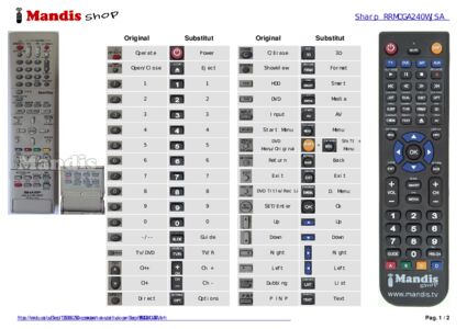 Aquest comandament a distància substitueix completament el teu RRMCGA240WJSA en totes les seves funcions. No és un comandament universal, sinó una còpia exacta del teu original.