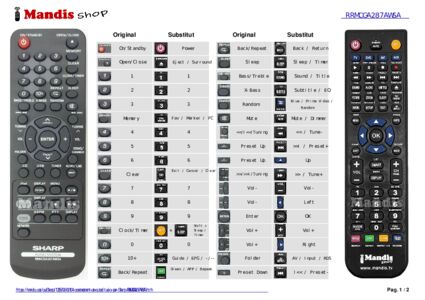 A continuació, us mostrarem la correspondència entre cada un dels botons del comandament original i el botó que realitza la mateixa funció en el comandament de substitució. En alguns casos, és possible que necessiti prémer la tecla SHIFT abans de prémer un altre botó per realitzar certes accions. Aquestes funcions addicionals sovint no s'utilitzen gaire i s'inclouen per facilitar la comprensió del comandament de substitució, o perquè el comandament original té més botons que el seu equivalent.