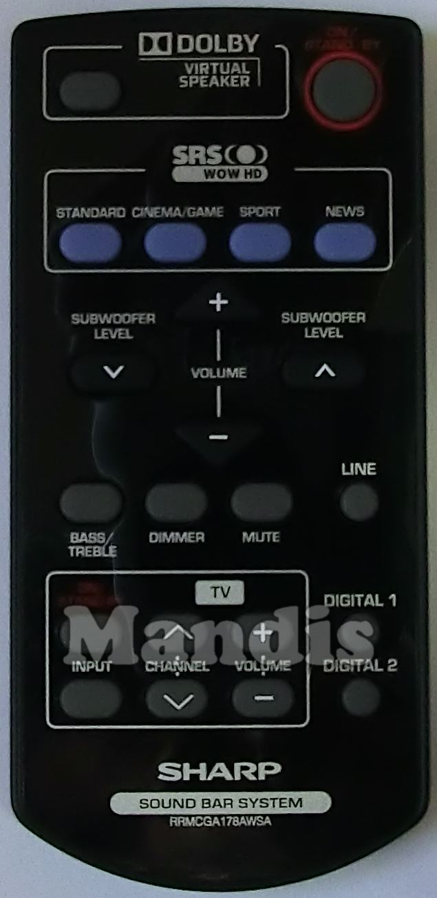 Comandament a distància original RRMCGA178AWSA que serveix per cadena hi-fi de la marca Sharp. Es tracta d'un model original de comandament a distància.