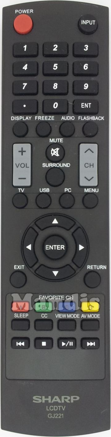 Comandament a distància original GJ221 que serveix per televisors de la marca Sharp. Es tracta d'un model original de comandament a distància.
