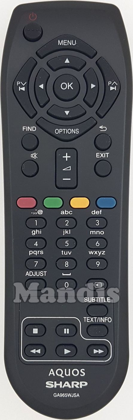 Comandament a distància original GA965WJSA (RRMCGA965WJSA) que serveix per televisors de la marca Sharp. Es tracta d'un model original de comandament a distància.