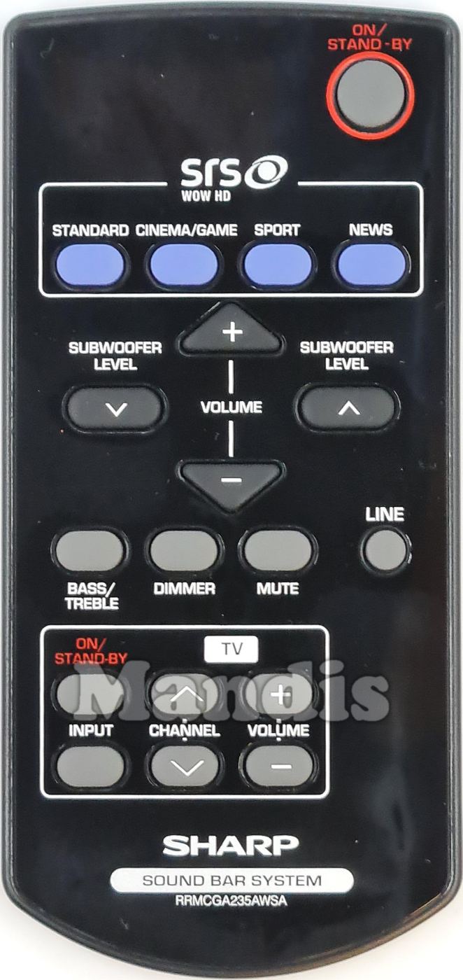 Comandament a distància original RRMCGA235AWSA que serveix per barra so de la marca Sharp. Es tracta d'un model original de comandament a distància.