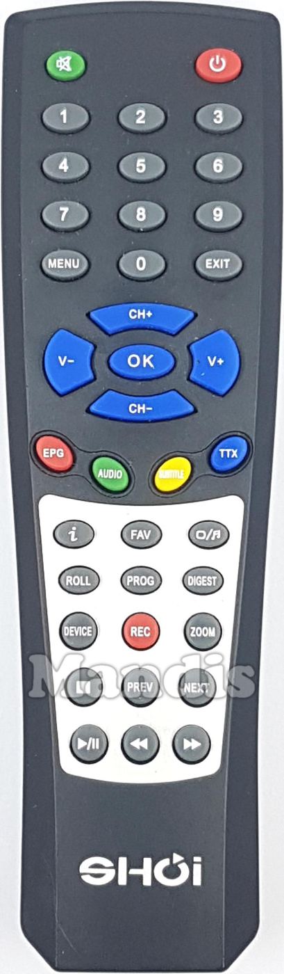 Comandament a distància original REMCON1928 que serveix per televisors de la marca Shoi. Es tracta d'un model original de comandament a distància.