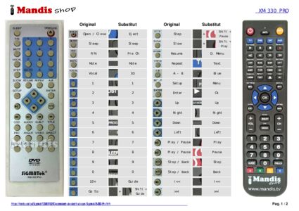 A continuació, us mostrarem la correspondència entre cada un dels botons del comandament original i el botó que realitza la mateixa funció en el comandament de substitució. En alguns casos, és possible que necessiti prémer la tecla SHIFT abans de prémer un altre botó per realitzar certes accions. Aquestes funcions addicionals sovint no s'utilitzen gaire i s'inclouen per facilitar la comprensió del comandament de substitució, o perquè el comandament original té més botons que el seu equivalent.