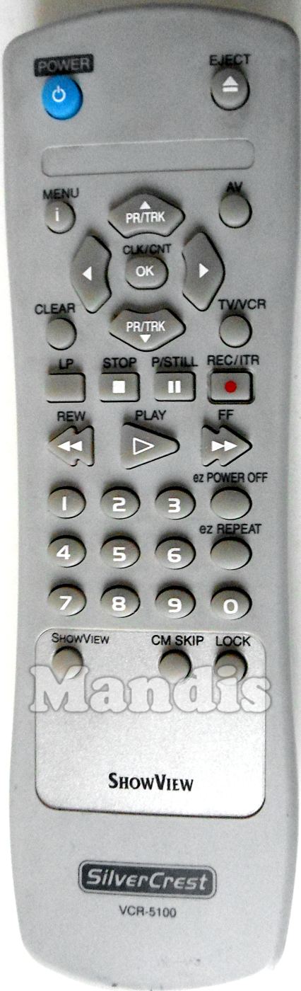 Comandament a distància original VCR5100 de la marca Silvercrest. Es tracta d'un model original de comandament a distància.