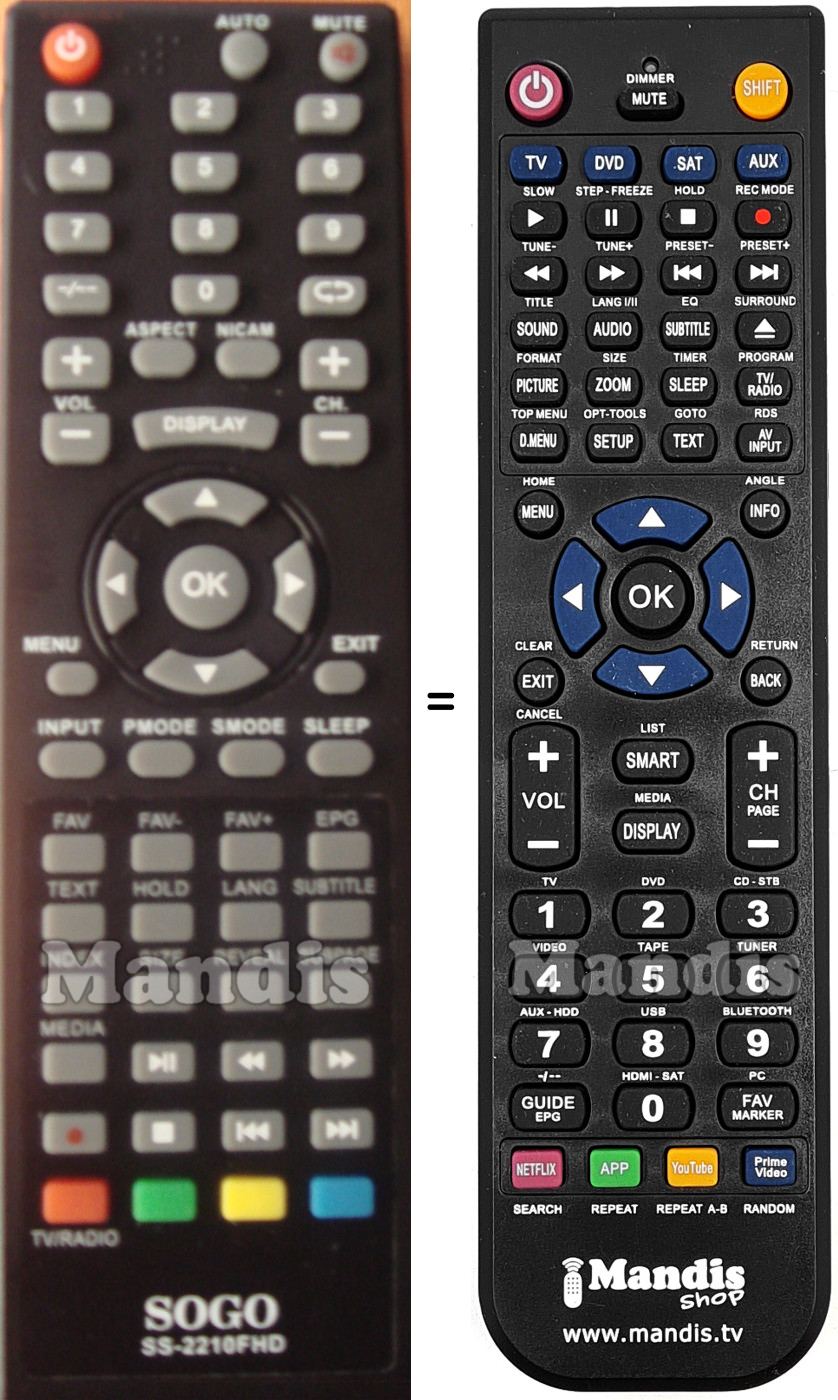 Aquest comandament a distància substitueix completament el teu SS-2210FHD (SS2210FHD) en totes les seves funcions. No és un comandament universal, sinó una còpia exacta del teu original.