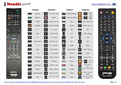 A continuació, us mostrarem la correspondència entre cada un dels botons del comandament original i el botó que realitza la mateixa funció en el comandament de substitució. En alguns casos, és possible que necessiti prémer la tecla SHIFT abans de prémer un altre botó per realitzar certes accions. Aquestes funcions addicionals sovint no s'utilitzen gaire i s'inclouen per facilitar la comprensió del comandament de substitució, o perquè el comandament original té més botons que el seu equivalent.