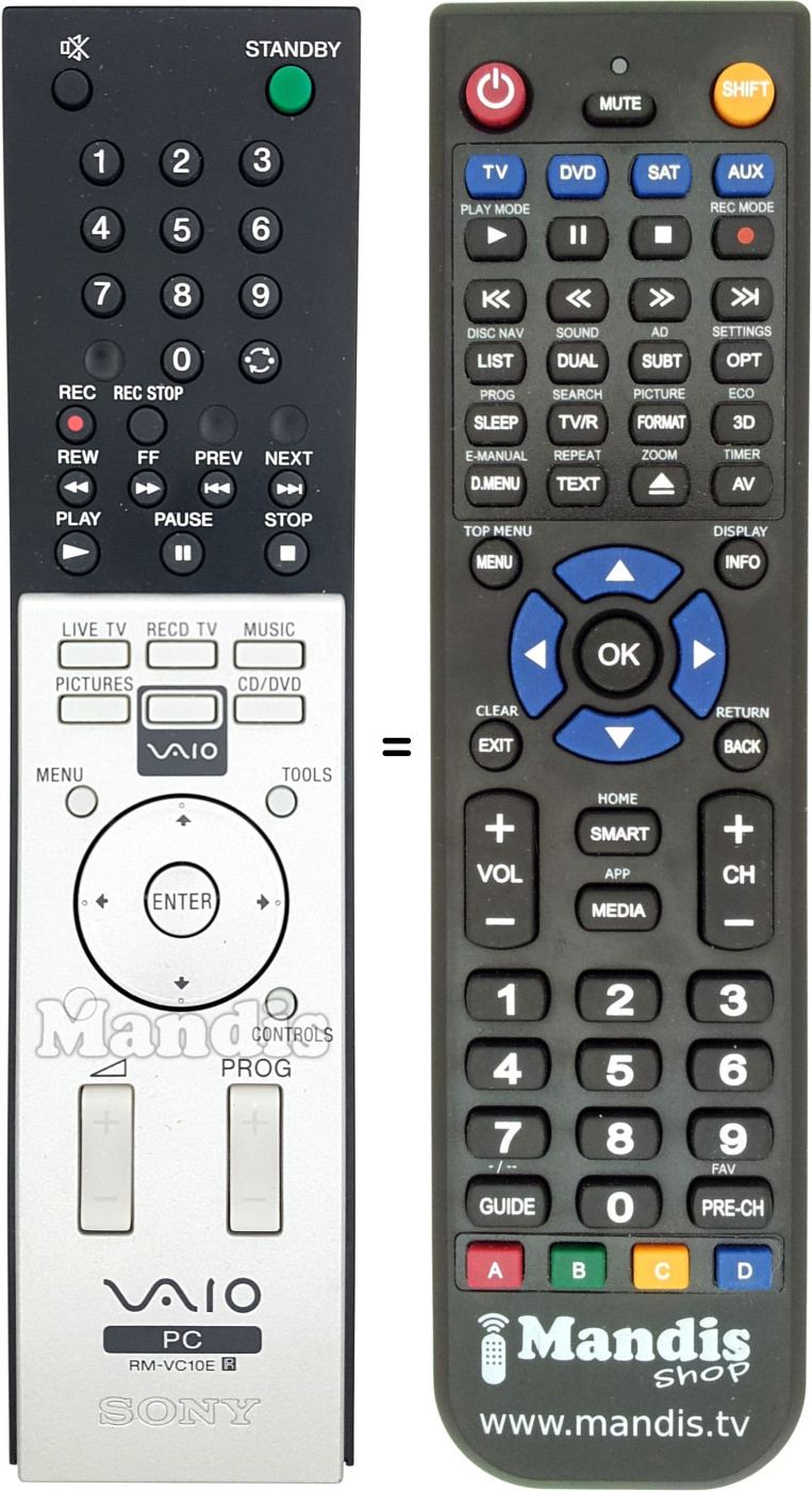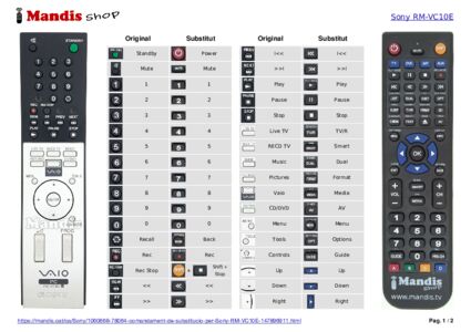 Aquest comandament a distància substitueix completament el teu RM-VC10E (147896911) en totes les seves funcions. No és un comandament universal, sinó una còpia exacta del teu original.