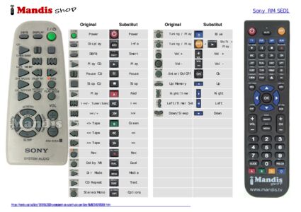 Aquest comandament a distància substitueix completament el teu RM-SED1 (891760891) en totes les seves funcions. No és un comandament universal, sinó una còpia exacta del teu original.