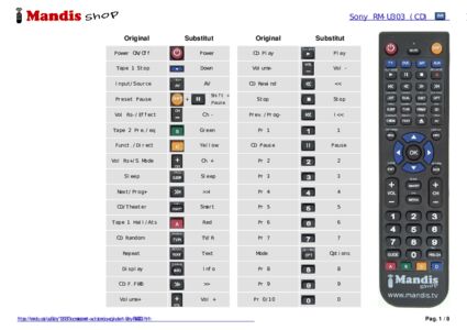 Aquest comandament a distància substitueix completament el teu RM-U303 (141829411) en totes les seves funcions. No és un comandament universal, sinó una còpia exacta del teu original.