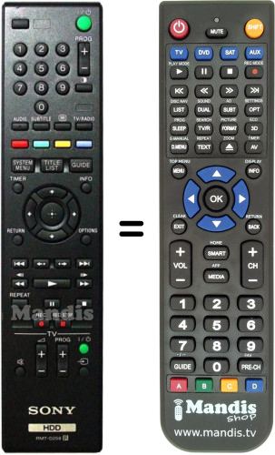 Aquest comandament a distància substitueix completament el teu RMT-D259 (148917111) en totes les seves funcions. No és un comandament universal, sinó una còpia exacta del teu original.