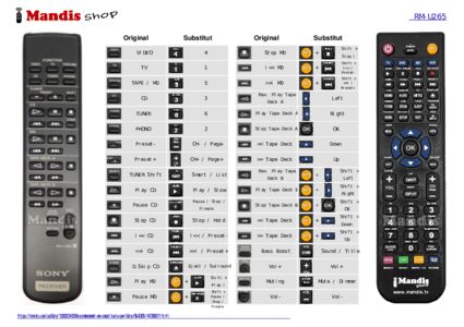 Aquest comandament a distància substitueix completament el teu RM-U265 (147363311) en totes les seves funcions. No és un comandament universal, sinó una còpia exacta del teu original.