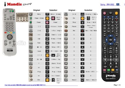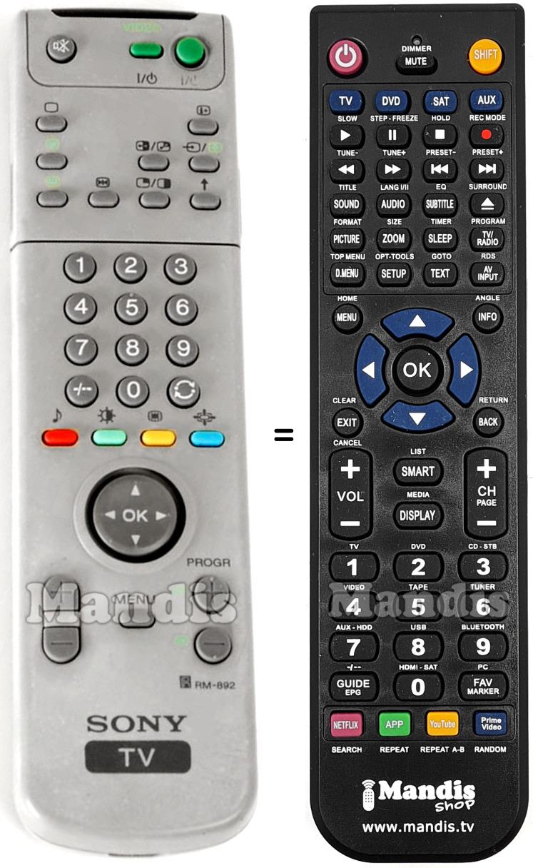 Aquest comandament a distància substitueix completament el teu RM-892 (141857211) en totes les seves funcions. No és un comandament universal, sinó una còpia exacta del teu original.