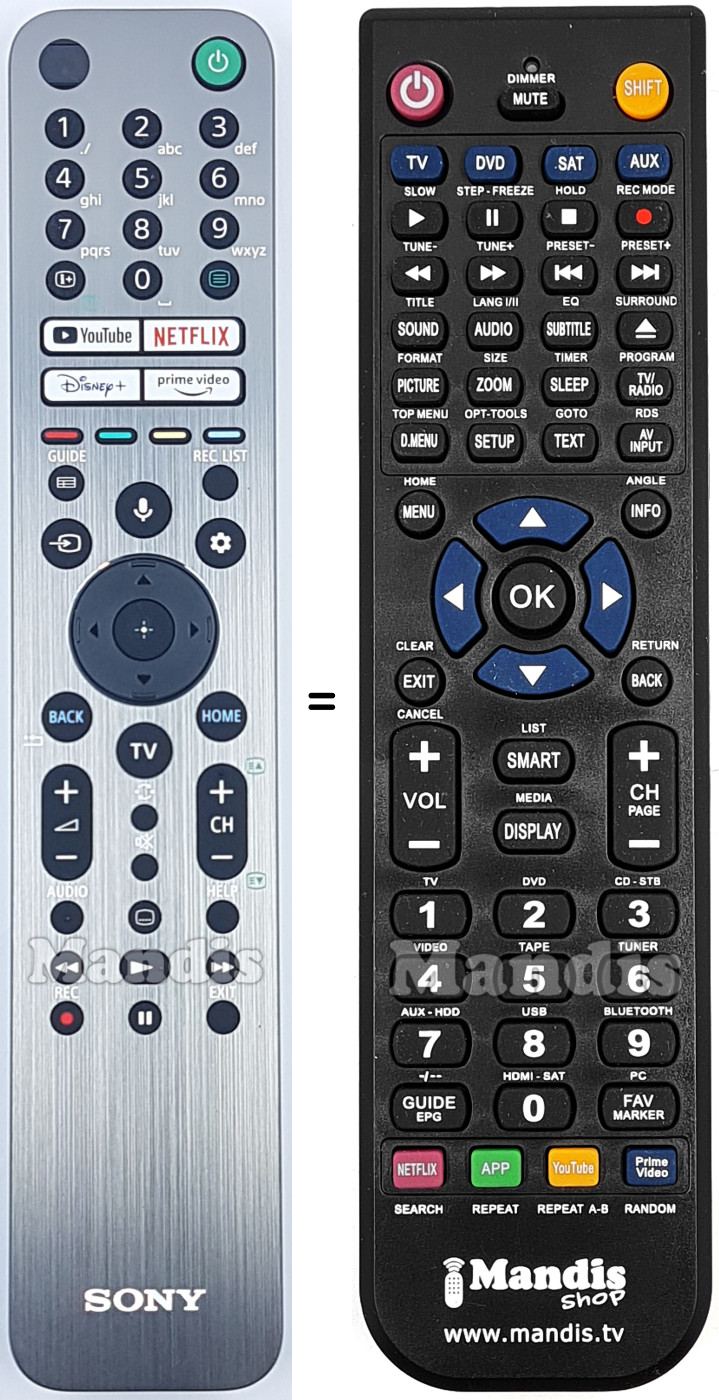 Aquest comandament a distància substitueix completament el teu RMF-TX621E (100994912) en totes les seves funcions. No és un comandament universal, sinó una còpia exacta del teu original.