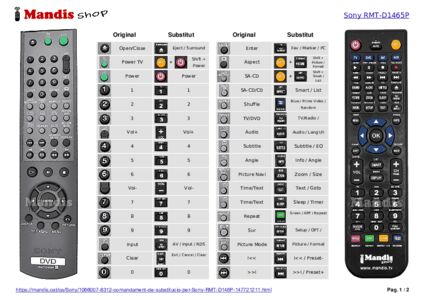 Aquest comandament a distància substitueix completament el teu RMT-D146P (147721211) en totes les seves funcions. No és un comandament universal, sinó una còpia exacta del teu original.