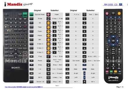 Aquest comandament a distància substitueix completament el teu RM-S930 en totes les seves funcions. No és un comandament universal, sinó una còpia exacta del teu original.