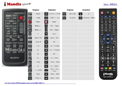 Aquest comandament a distància substitueix completament el teu RMT-831 (147849541) en totes les seves funcions. No és un comandament universal, sinó una còpia exacta del teu original.