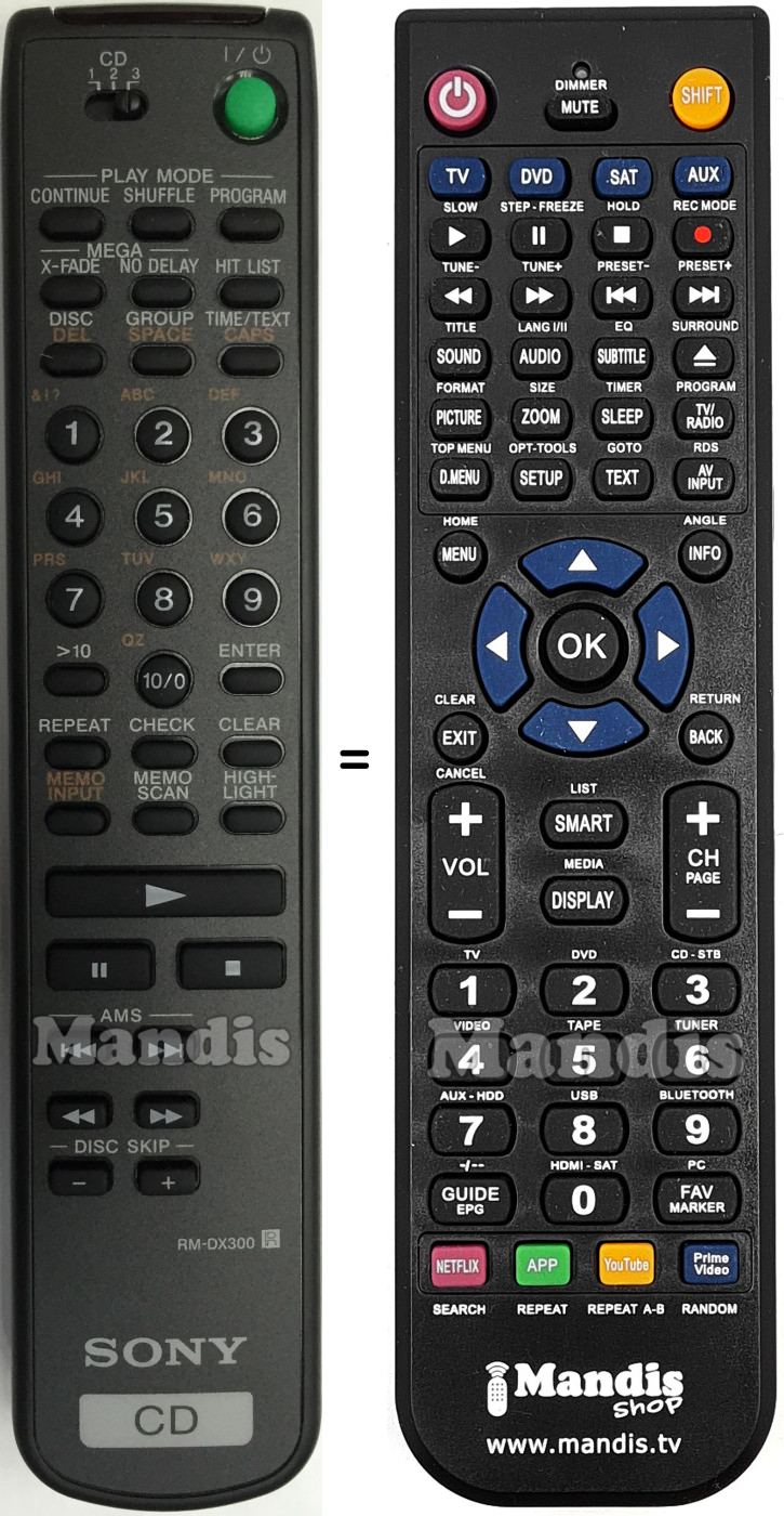 Aquest comandament a distància substitueix completament el teu RMDX300 (141841912) en totes les seves funcions. No és un comandament universal, sinó una còpia exacta del teu original.