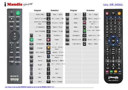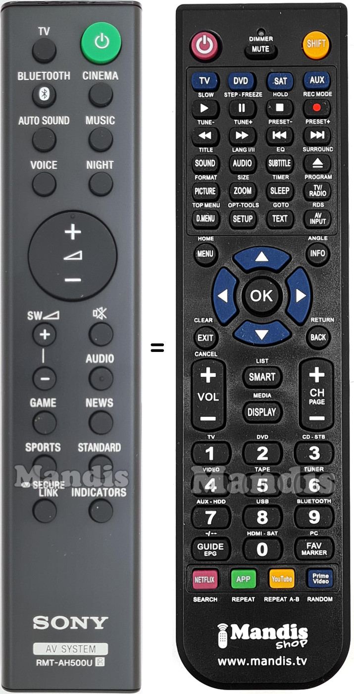 Aquest comandament a distància substitueix completament el teu RMT-AH500U (1-493-544-11) en totes les seves funcions. No és un comandament universal, sinó una còpia exacta del teu original.