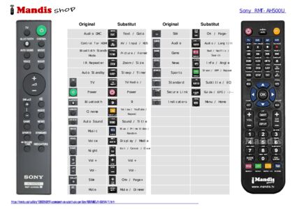 Inici > Marques > Comandaments a distància Sony > Comandament per Sony RMT-AH500U > Distribució interactiva de tecles Sony RMT-AH500U