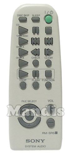 Comandament a distància original RM-SR5 (147557211) que serveix per cadena hi-fi de la marca Sony. Es tracta d'un model original de comandament a distància.