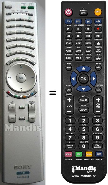 Comandament a distància que substitueix el comandament RM-940 (147815911) en totes les seves funcions.