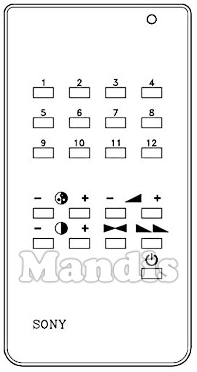 1, 2, 3, 4, 5, 6, 7, 8, 9, 10, 11, 12, Color-, Color+, Contrast-, Contrast+, Vol-, Vol+, ▶◀, ◣ ◣, Power