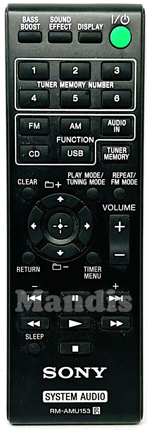 Comandament a distància original RM-AMU153 (149016711) que serveix per Equips de música de la marca Sony.
