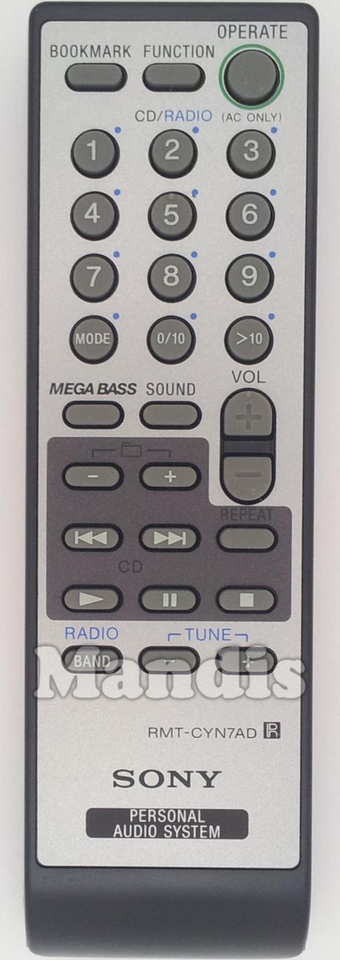 Comandament a distància original RMT-CYN7AD (A1056326A) que serveix per cadena hi-fi de la marca Sony. Es tracta d'un model original de comandament a distància.