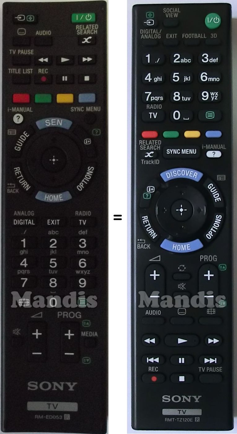 Comandaments equivalents que substitueixen en totes les seves funcions al comandament SONY RMT-TZ120E (149317611):