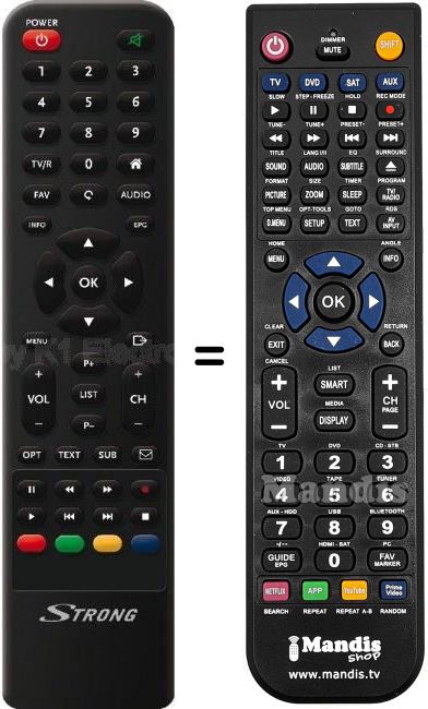A continuació, us mostrarem la correspondència entre cada un dels botons del comandament original i el botó que realitza la mateixa funció en el comandament de substitució. En alguns casos, és possible que necessiti prémer la tecla SHIFT abans de prémer un altre botó per realitzar certes accions. Aquestes funcions addicionals sovint no s'utilitzen gaire i s'inclouen per facilitar la comprensió del comandament de substitució, o perquè el comandament original té més botons que el seu equivalent.