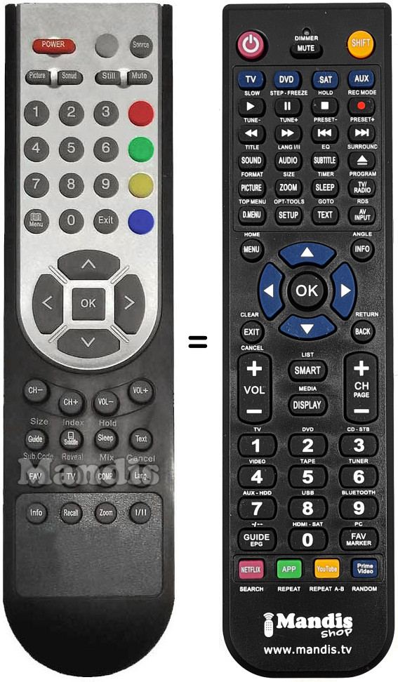 Comandament a distància que substitueix a l'original en totes les seves funcions.