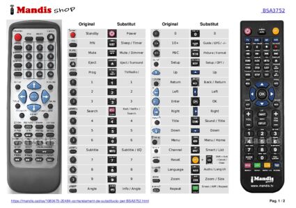 A continuació, us mostrarem la correspondència entre cada un dels botons del comandament original i el botó que realitza la mateixa funció en el comandament de substitució. En alguns casos, és possible que necessiti prémer la tecla SHIFT abans de prémer un altre botó per realitzar certes accions. Aquestes funcions addicionals sovint no s'utilitzen gaire i s'inclouen per facilitar la comprensió del comandament de substitució, o perquè el comandament original té més botons que el seu equivalent.