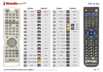 Aquest comandament a distància substitueix completament el teu RC-882 en totes les seves funcions. No és un comandament universal, sinó una còpia exacta del teu original.