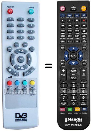 Sí, el comandament equivalent realitza totes les funcions, fins i tot quan el comandament original controla diversos aparells. Al comandament equivalent es poden programar els camps de diferents aparells (TV, DVD, SAT i AUX) d'aquesta manera es pot incloure totes les funcions del comandament original. Si si visualitza el manual de les tecles (instruccions del comandament a distància) podrà comprovar que hi ha totes les funcions.