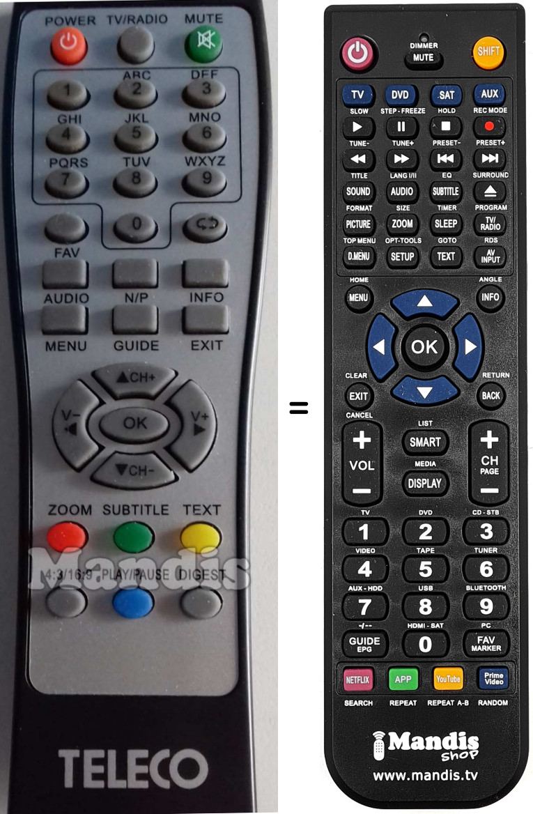 Comandament a distància que substitueix el comandament RDT1000CPVR en totes les seves funcions.