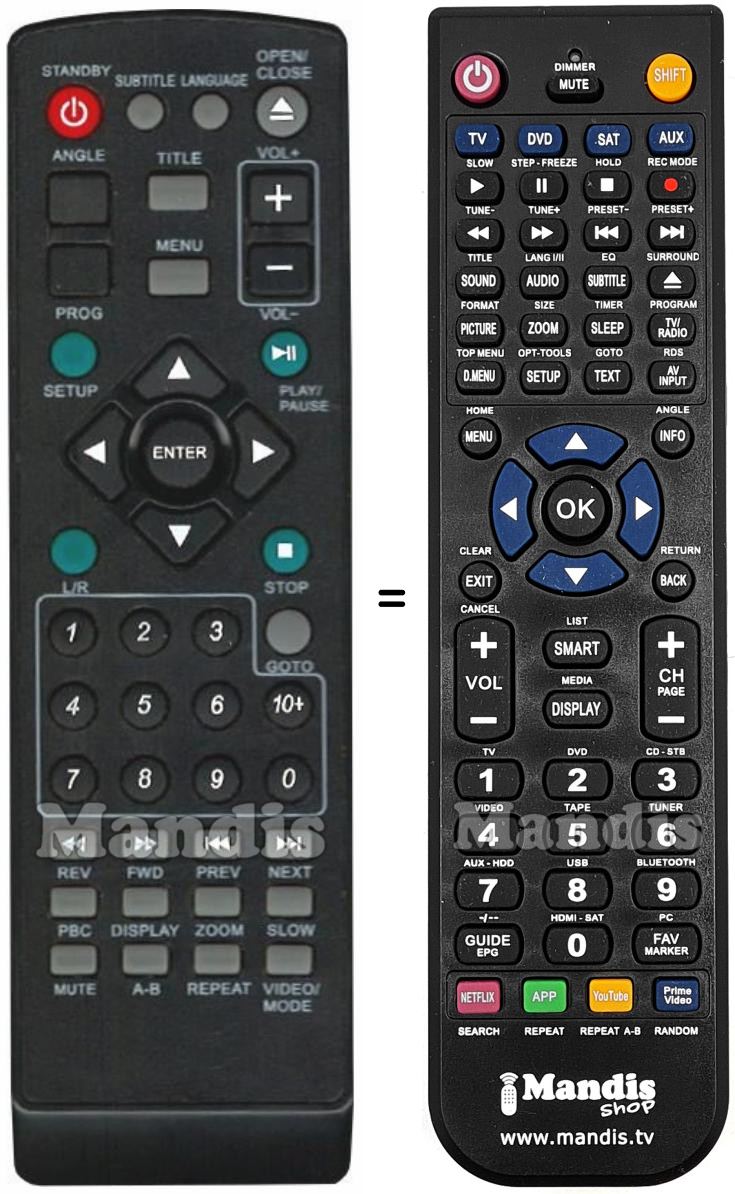 Aquest comandament a distància substitueix completament el teu REMCON981-black en totes les seves funcions. No és un comandament universal, sinó una còpia exacta del teu original.