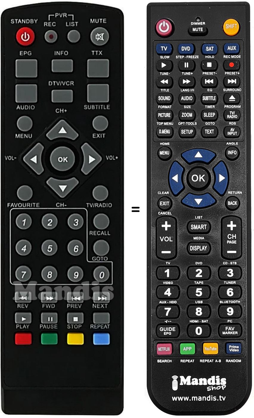 Comandament a distància que substitueix a l'original en totes les seves funcions.