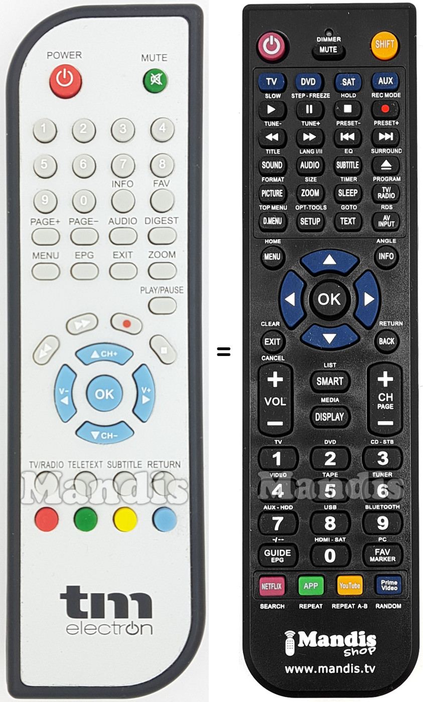 Aquest comandament a distància substitueix completament el teu TME001 en totes les seves funcions. No és un comandament universal, sinó una còpia exacta del teu original.