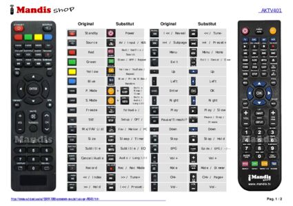 A continuació, us mostrarem la correspondència entre cada un dels botons del comandament original i el botó que realitza la mateixa funció en el comandament de substitució. En alguns casos, és possible que necessiti prémer la tecla SHIFT abans de prémer un altre botó per realitzar certes accions. Aquestes funcions addicionals sovint no s'utilitzen gaire i s'inclouen per facilitar la comprensió del comandament de substitució, o perquè el comandament original té més botons que el seu equivalent.