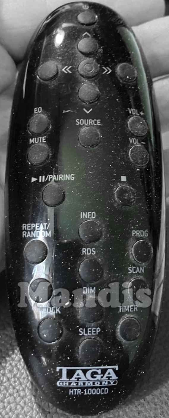 Comandament a distància original HTR-1000CD que serveix per receptor av de la marca Taga Harmony. Es tracta d'un model original de comandament a distància.