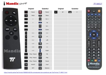 Aquest comandament a distància substitueix completament el teu TT-SK017 en totes les seves funcions. No és un comandament universal, sinó una còpia exacta del teu original.