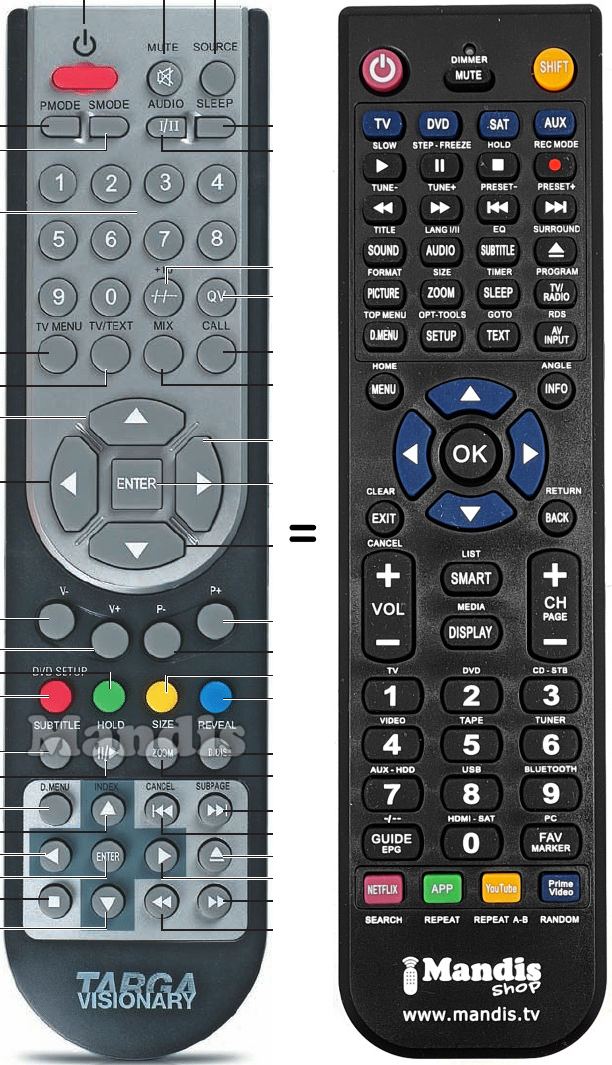 Comandament a distància que substitueix el comandament VISIONARYLT1910DVD en totes les seves funcions.