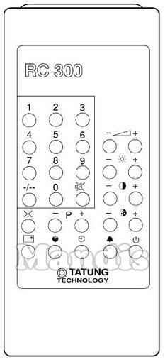 Comandament a distància original RC 300 que serveix per televisors de la marca Tatung. Es tracta d'un model original de comandament a distància.