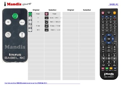 Aquest comandament a distància substitueix completament el teu TF1004R-E (Babel RC) en totes les seves funcions. No és un comandament universal, sinó una còpia exacta del teu original.